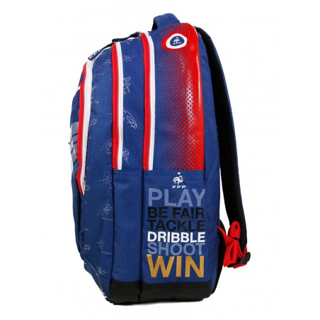 cartable de couleur bleu et rouge affichant le logo de la FFF. Pour des dimensions de 38 x 34 x 16 cm, il comprend deux compartiments et une poche afin que l’enfant en CE2, CM1 et CM2 puisse emporter tout ce dont il aura besoin pour ses cours. Ses deux clips ainsi que son fond renforcé et imperméable à l’eau gardent...