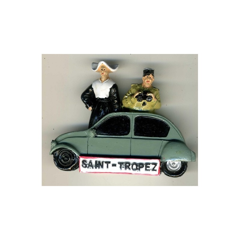 Magnet en relief le gendarme à Saint Tropez et la 2CV