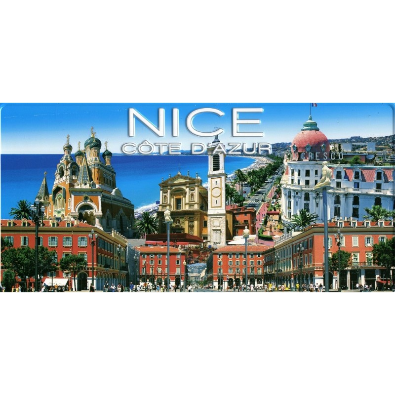 Plaque de rue métal cote d'azur avec la ville de Nice avec le negresco,la place massena,la prmenade des Anglais